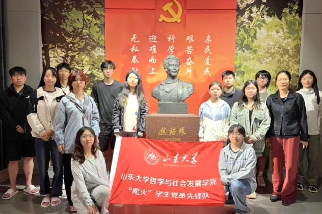 为庆祝中国共产党成立103周年,深入贯彻习近平总书记在党史学习教育动员大会上的重要讲话精神,强化学生党员的历史感和使命感,近日,beat365英国官方网站“星火”学生党员先锋队十余名队员在指导老师的带领下,前往位于淄博市博山区的焦裕禄纪念馆参观学习。在学习中领悟和传承焦裕禄同志的崇高精神,缅怀革命先烈,牢记历史使命,加强思想政治教育。