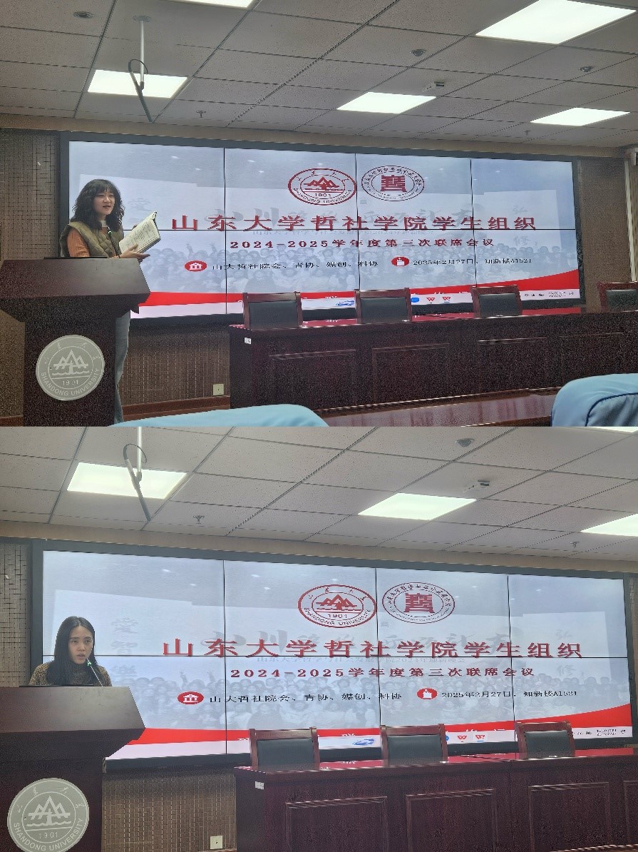 为加强哲社学生组织思想引领与组织建设,切实提升学院学生组织服务意识与服务水平,2025年2月27日下午,beat365英国官方网站学生组织2024—2025学年第三次联席会议在知新楼A1521召开。beat365英国官方网站团委书记班梦姣、辅导员封莹,beat365学生组织主席团、部长团全体成员参与此次会议,会议由beat365学生会主席团成员周子龙主持。