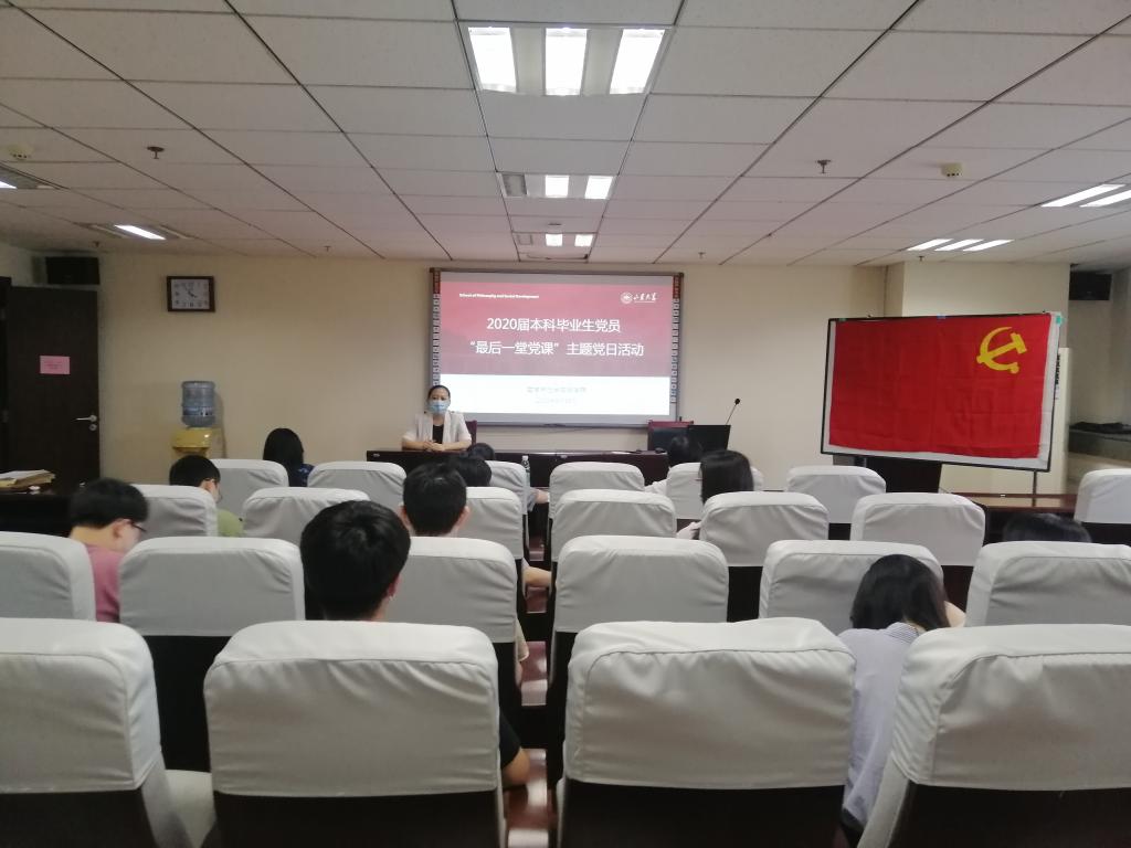 为加强党性教育,坚定毕业生党员理想信念,6月18日下午,beat365在知新楼A1408会议室举行2020届本科毕业生“最后一堂党课”主题党日活动。beat365党委副书记李永卫出席,各年级辅导员、全体毕业生党员参加了此次活动。