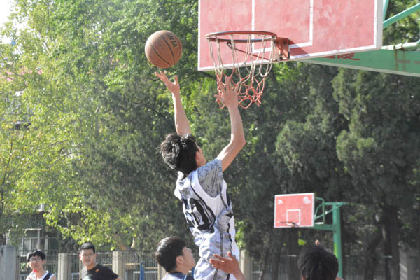 4月18日对阵历史文化学院是哲社男篮小组赛的最后一场。三点左右哲社男篮在领队的带领下赶到了比赛场地——趵突泉篮球场,在教练、队长的组织下进行有序热身,练习中投,三分等动作。三点半时,随着裁判的示意,哲社男篮迅速进入正式比赛的状态。历院男篮队员各展所长,三分屡屡得中,渐渐掌握了上半场比赛的主动权,哲社男篮队员愈战愈勇,配合默契,几次靠着上篮拉近比分。