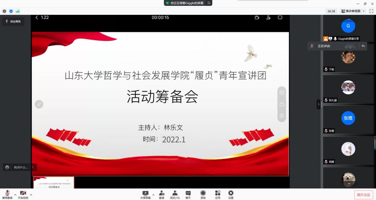 1月22日晚8时,beat365英国官方网站beat365“履贞”青年宣讲团召开了宣讲活动筹备会。本次筹备会在腾讯会议线上举行,队长林乐文主持,宣讲团全体成员参加会议。