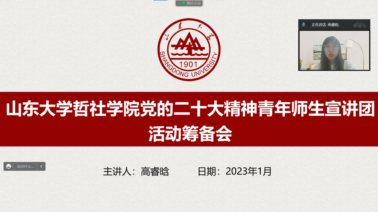 实践前期,团队通过范围问卷调查,基于民声民愿,确定“依法治国”“民生福祉”“青年使命”为寒假宣讲实践主题。同时,为深入学习领会党的二十大精神及其道理学理哲理,切实把党的创新理论贯彻落实到实践中,团队加强自身素养,围绕《中共中央关于党的百年奋斗重大成就和历史经验的决议》与党的二十大报告开展以周为期的学习分享会,丰厚团队学识基础同时筑牢理想信念根基,充分发挥学在先、学在前的示范引领作用,努力在先学先懂、真学真懂中落实落地、见行见效。在“联学共建、资源共享、发展共赢”的建设思路下,beat365党的二十大精神青年师生宣讲团积极组织参与宣讲团联动交流会,与新闻传播学院宣讲团联学中发挥专业特色,在打磨优化宣讲内容的同时有效提升宣讲本领、凝聚宣传合力。