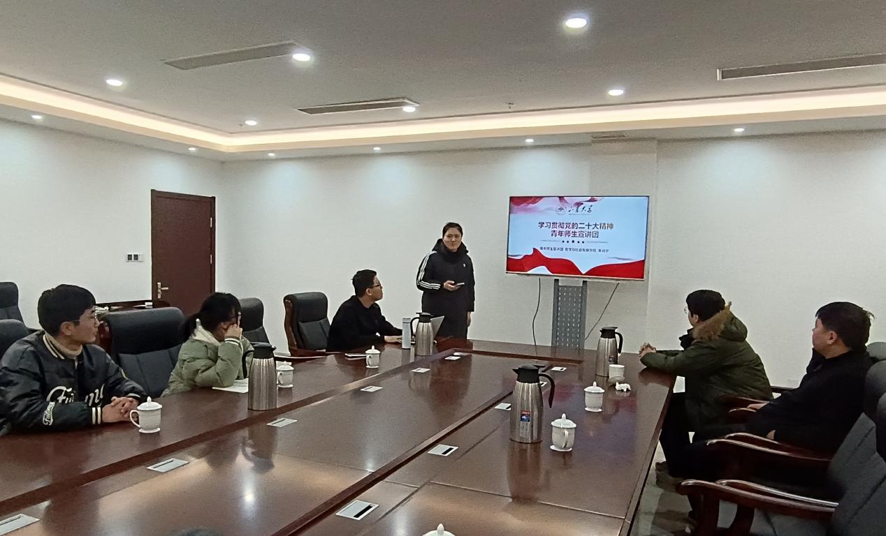 未来,宣讲团将以研究促学习,加强理论储能,提高自身涵养。团队将定期召开学习交流会、试讲总结会等,邀请学院老师与专家学者进行点评指导,实现成员自学、专家领学、交流促学、阵地引学的充分结合,将党的二十大精神学习引向深入。同时,团队将充分发挥专业特长,做深入贴切的理论分析与实地调研,进一步挖掘党的二十大报告所蕴含的精神宝藏和智慧能量,让思想在学深悟透中统一,力量在真学真信中凝聚。