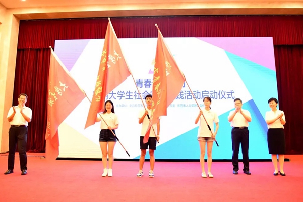 7月17日,中共东营市委组织部主持召开“相约黄河口”重点高校大学生暑期社会实践活动启动仪式,队长张可玟作为学生代表参加了授旗仪式。当日下午,调研团前往东营市府前社区的“四点半课堂”开展试调研,对其教学模式、学生状况等有了初步的了解。课后,调研员采访了社区学堂的老师和学生。