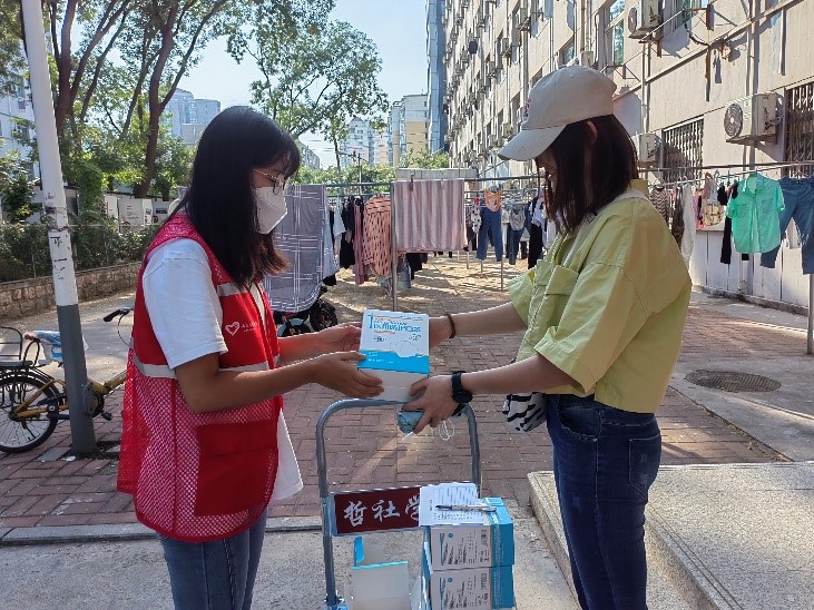 精心组织、热情服务。本次志愿服务面向学院本、硕、博各学段、各年级学生,发放范围涉及中心校区13栋学生宿舍楼,学生党员志愿者分为8个小组,在各宿舍楼下、楼宇之间设置党员先锋岗,定时定点为同学们发放防护口罩,并提醒同学们正确佩戴N95口罩、保持社交距离,积极宣传防疫知识,发挥了学生管理服务工作中青年学子的朋辈引领作用,以实际行动体现了学生党员的先锋模范作用。