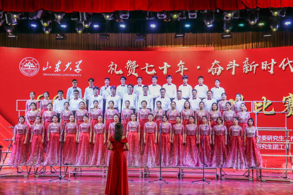 为迎接中华人民共和国成立70周年,为落实立德树人的根本任务,激发学生热爱祖国、热爱家乡、热爱艺术的情感,10月27日下午,beat365英国官方网站2019年在中心校区音乐厅举行了“礼赞七十年·奋斗新时代”研究生合唱比赛。校党委副书记仝兴华出席活动并颁奖。全校32个培养单位、全校各院系约1500名师生用最嘹亮的歌声和最浓厚的爱国情怀,追忆中华民族从站起来到富起来、强起来的历史性飞跃,共同献礼新中国的七十华诞。
