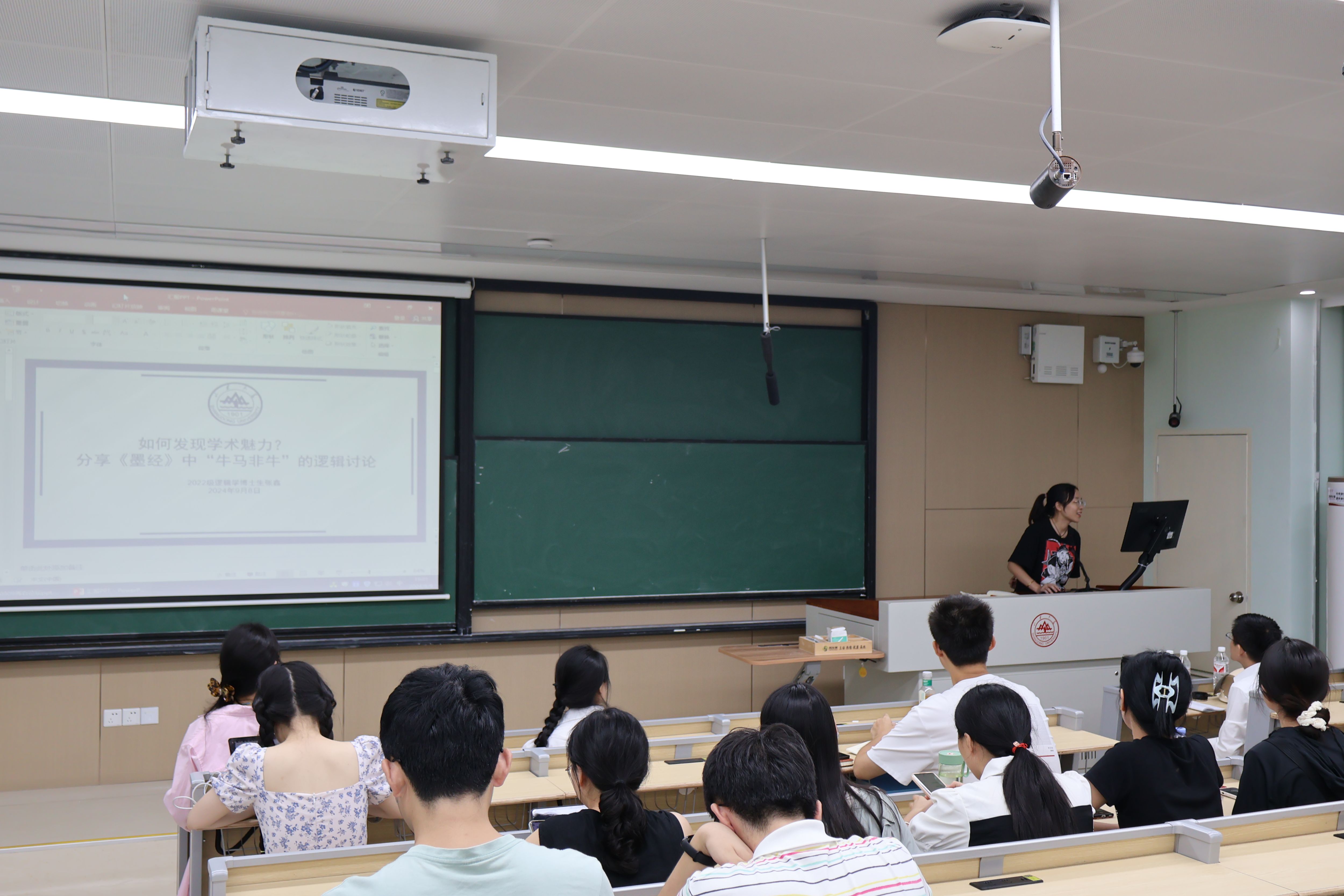 张鑫博士以如何发现学术魅力以及对《墨经》中“牛马非牛”的逻辑讨论为题进行了深入的分享。她首先从科研方向选择、心态管理、与导师的关系等多方面分享了自己在学术科研过程中的经验。随后,张鑫博士对《墨经》中“牛马非牛”这一命题的近现代学术研究进行了系统的文献回顾和梳理,深入分析与追踪了文本中涉及的两条核心逻辑原理与两条逻辑线索,并揭示了其在现代逻辑学和哲学研究中的意义。