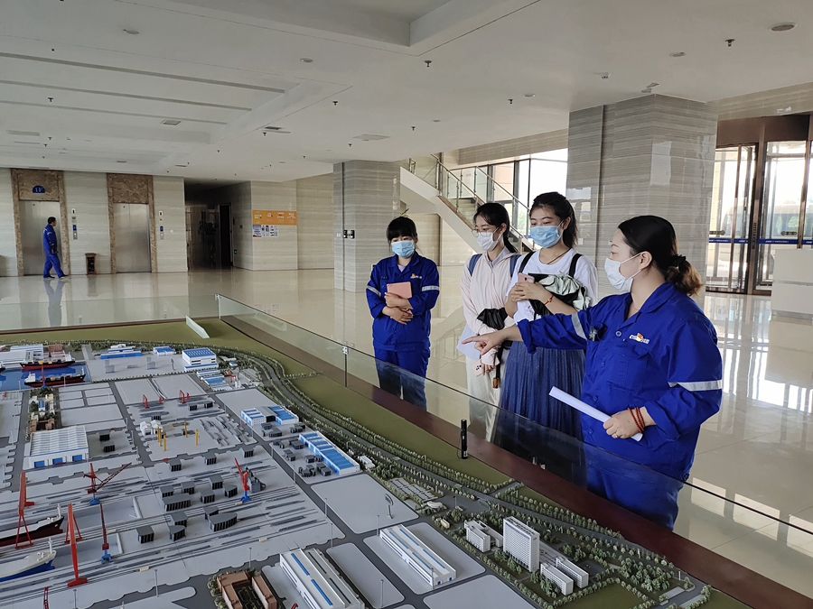 在此时间段里,我们采访了青岛市海洋发展局等政府单位,中国-上海合作组织地方经贸合作示范区等特色园区,beat365英国官方网站海洋研究院等科研机构,海西湾船舶与海洋工程产业基地等产业集聚区,青岛博益特生物股份有限公司等龙头企业,通过“实地参观学习+深入座谈交流”的方式聆听来自各界的“蓝色声音”。这些和我的专业并不搭边,原本是我的知识盲区;但是在调研的过程中,我渐渐完善了自己的知识体系。